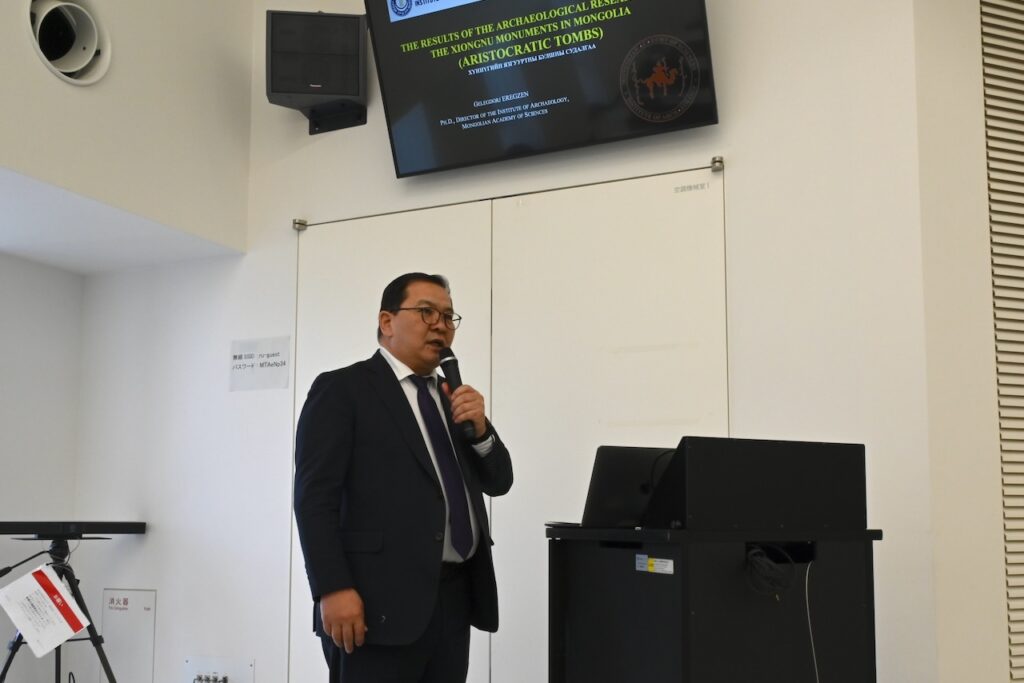 特別講演Ⅱでは、ツォクトバータル部門長が、2022年から実施されている考古学研究プロジェクト「遺産文化のかまど」の成果について報告しました。